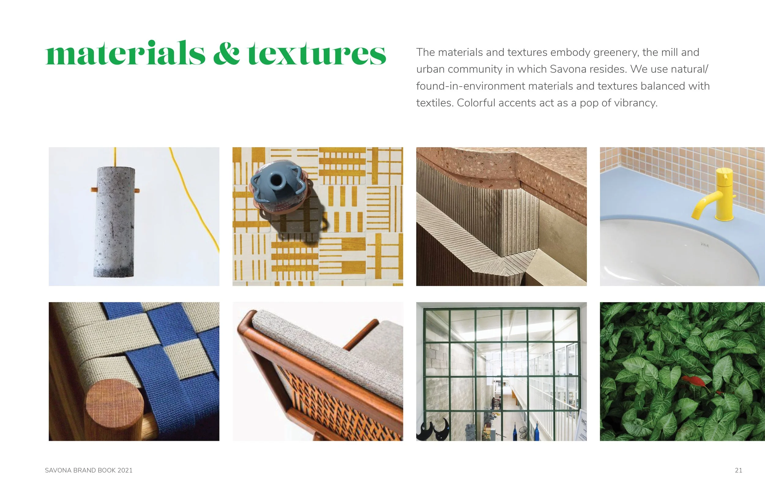 This brand book serves as a guide to architects, interior designers, vendors and staff alike as the vision of Savona comes to life in the heart of West End Charlotte, NC.